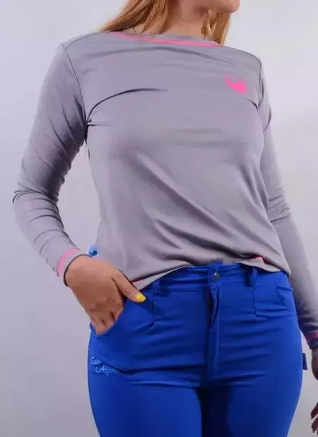 Todas nuestras prendas deportivas que van ajustadas al cuerpo se trabajan con vinilos en reemplazo de etiquetas de tela, para no generar roce o molestias en contacto con la piel.